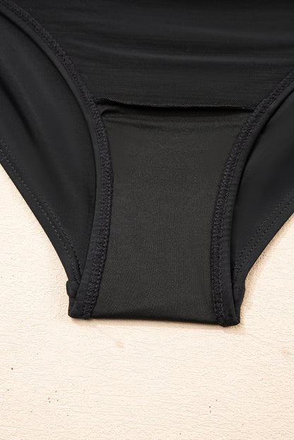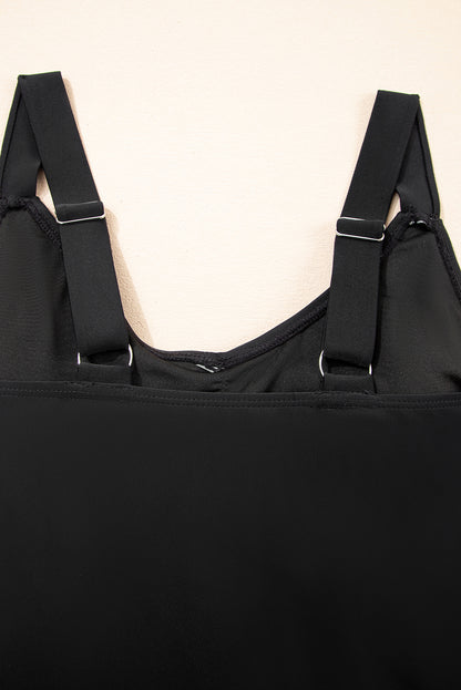 Black Adjustable Straps Cutout Ruched Knot Slit One Piece Swim Dress