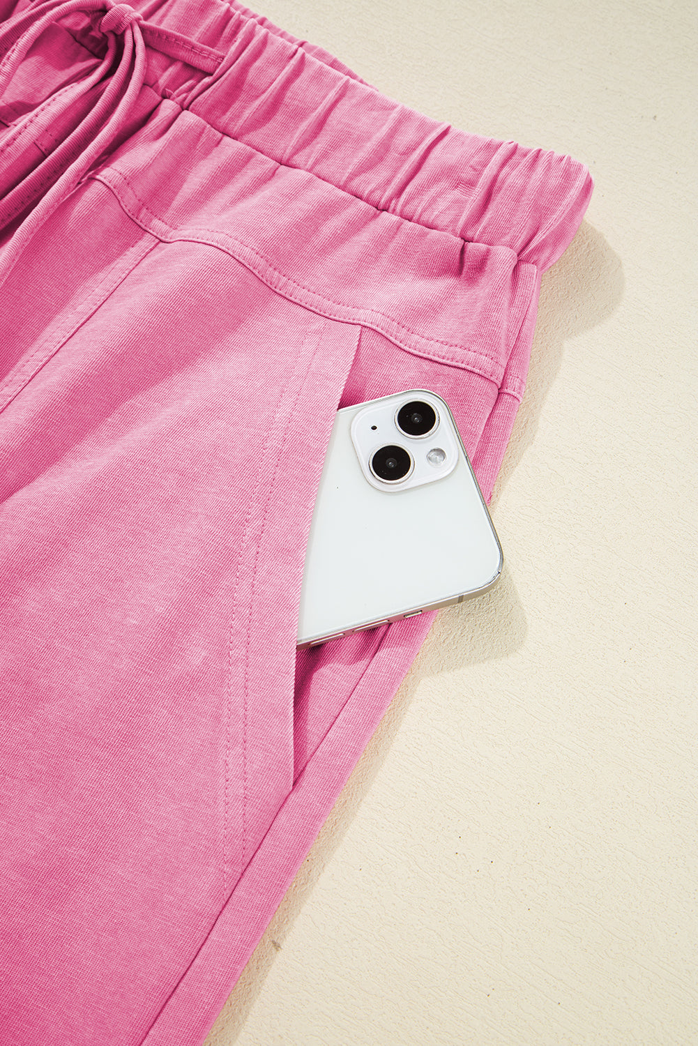 Bonbon Mineral Wash Exposed Seam Drawstring High Waist Wide Leg Cargo Pants