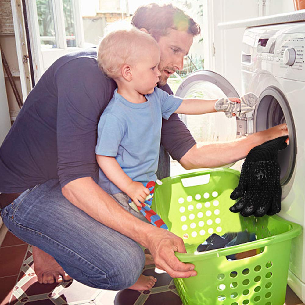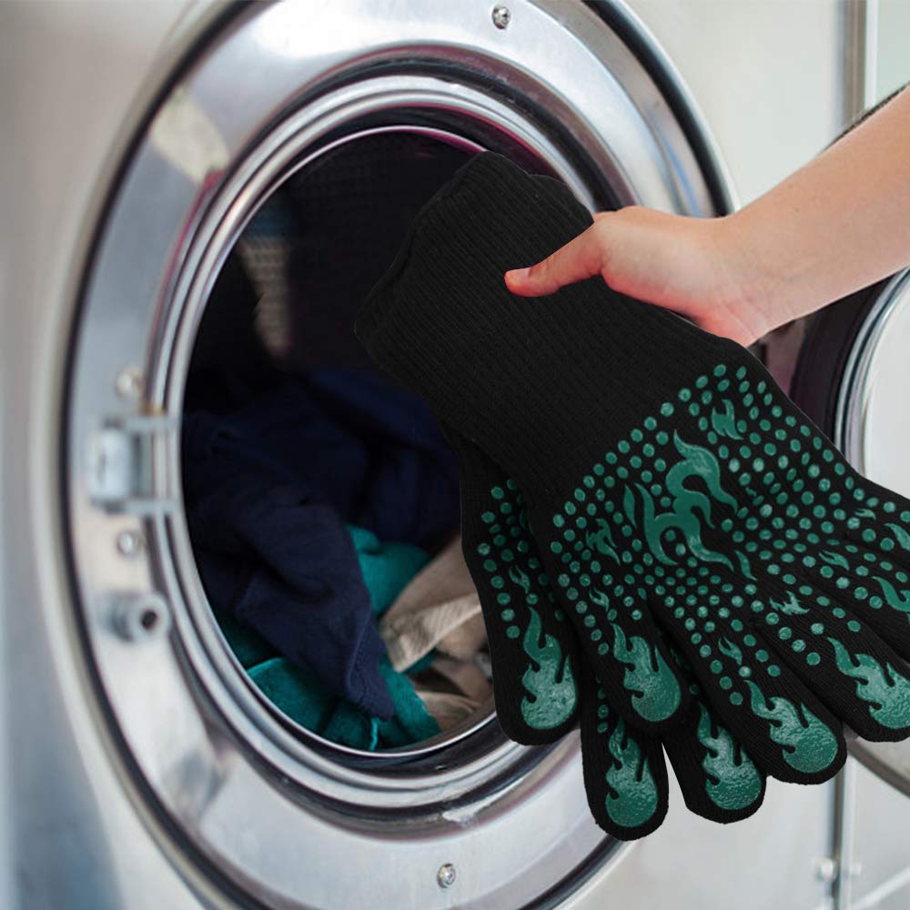 - Easy to clean and store: Our heat resistant gloves can be easily cleaned either by machine washing or hand washing. The inner side of the cuffs features a convenient loop for hanging and drying, making storage a breeze.