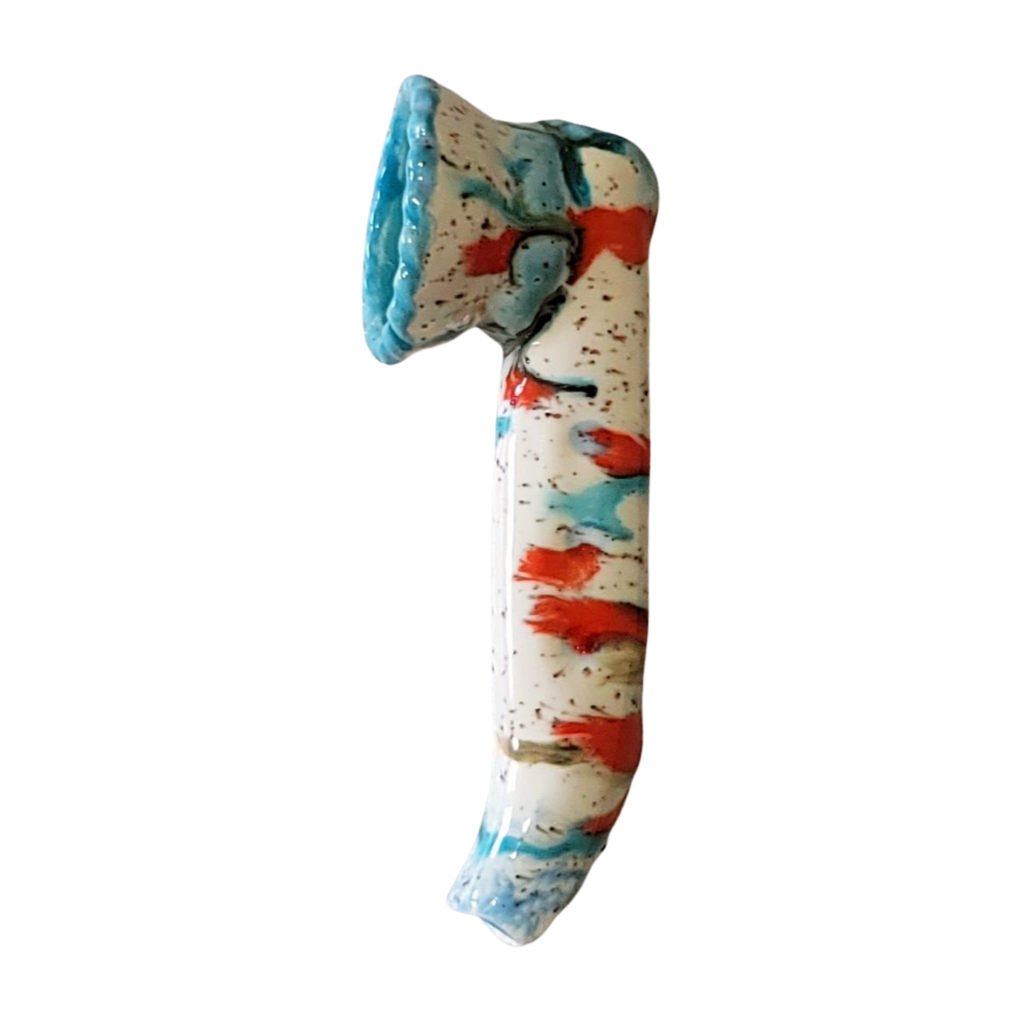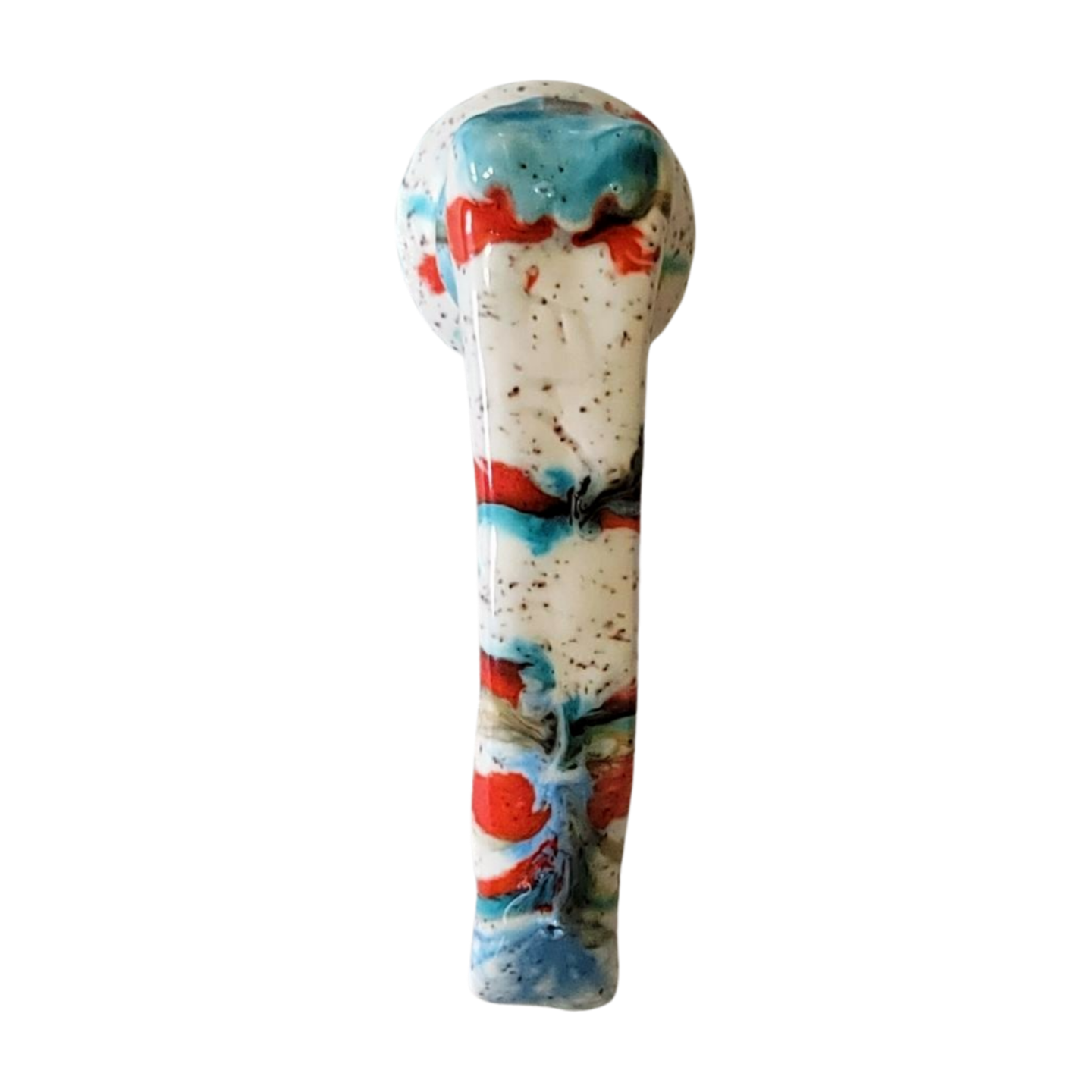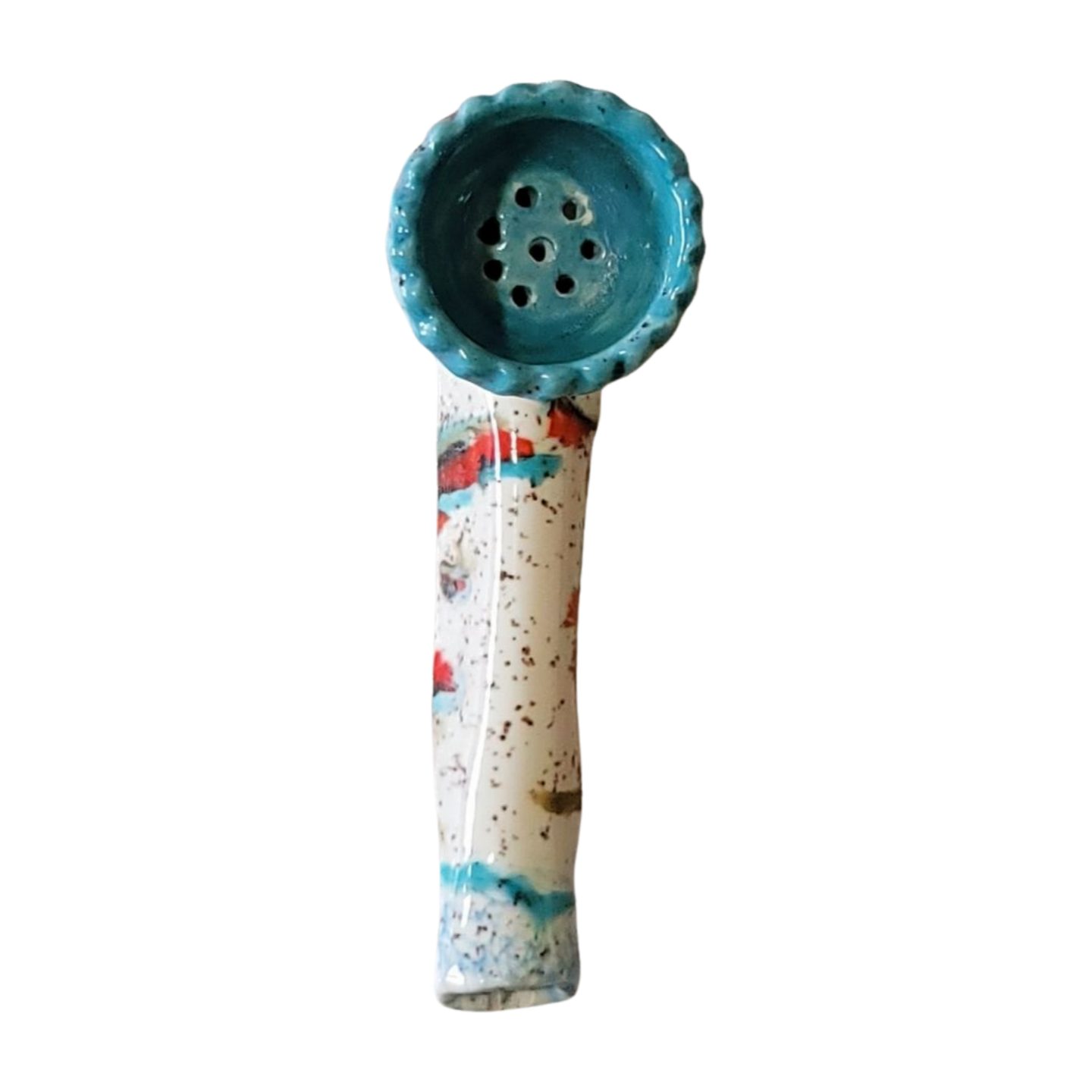 Introducing the Cuppy Cake Pipe - a hand-built ceramic pipe perfect for any smoking sesh! The teal confetti colors will bring joy to your day, while the curved lip and compact size ensure comfort and convenience. At 4" long with a 1" bowl depth, it's the perfect pipe for any occasion.