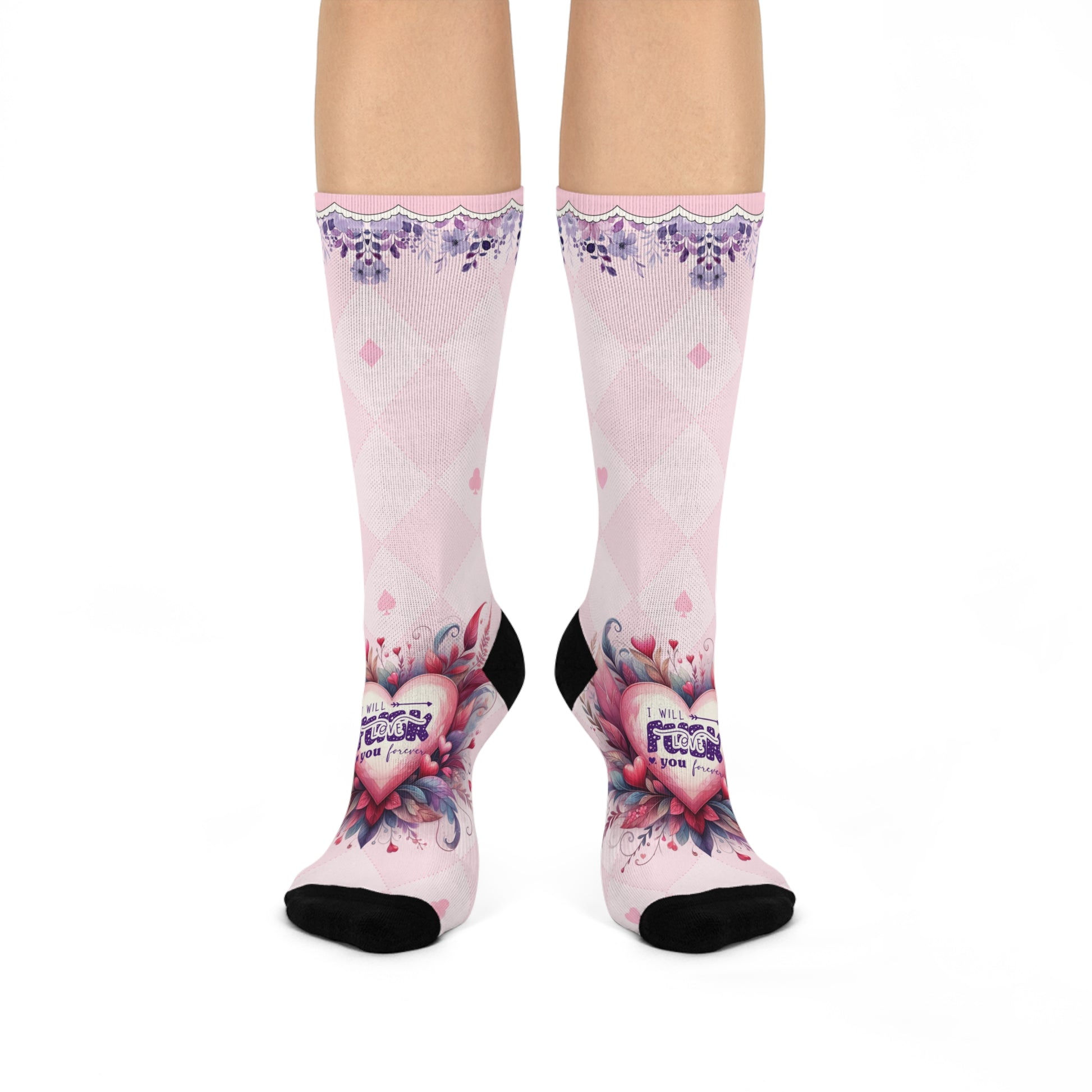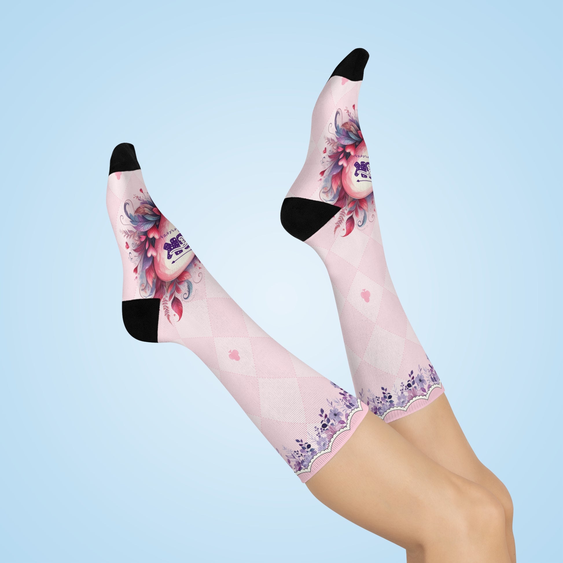 These cushioned DTG crew socks are a one-size style designed with both function and appearance in mind. With the fully cushioned heel-to-toe, these socks provide superior comfort, while the DTG print process allows for ultra-crisp, crease-free printing. Composed of 73% polyester, 18% nylon, 6% spandex, and 3% cotton, these socks are an elevated alternative to the typical sublimation sock and provide a clean, comfortable base for your all-over print designs.