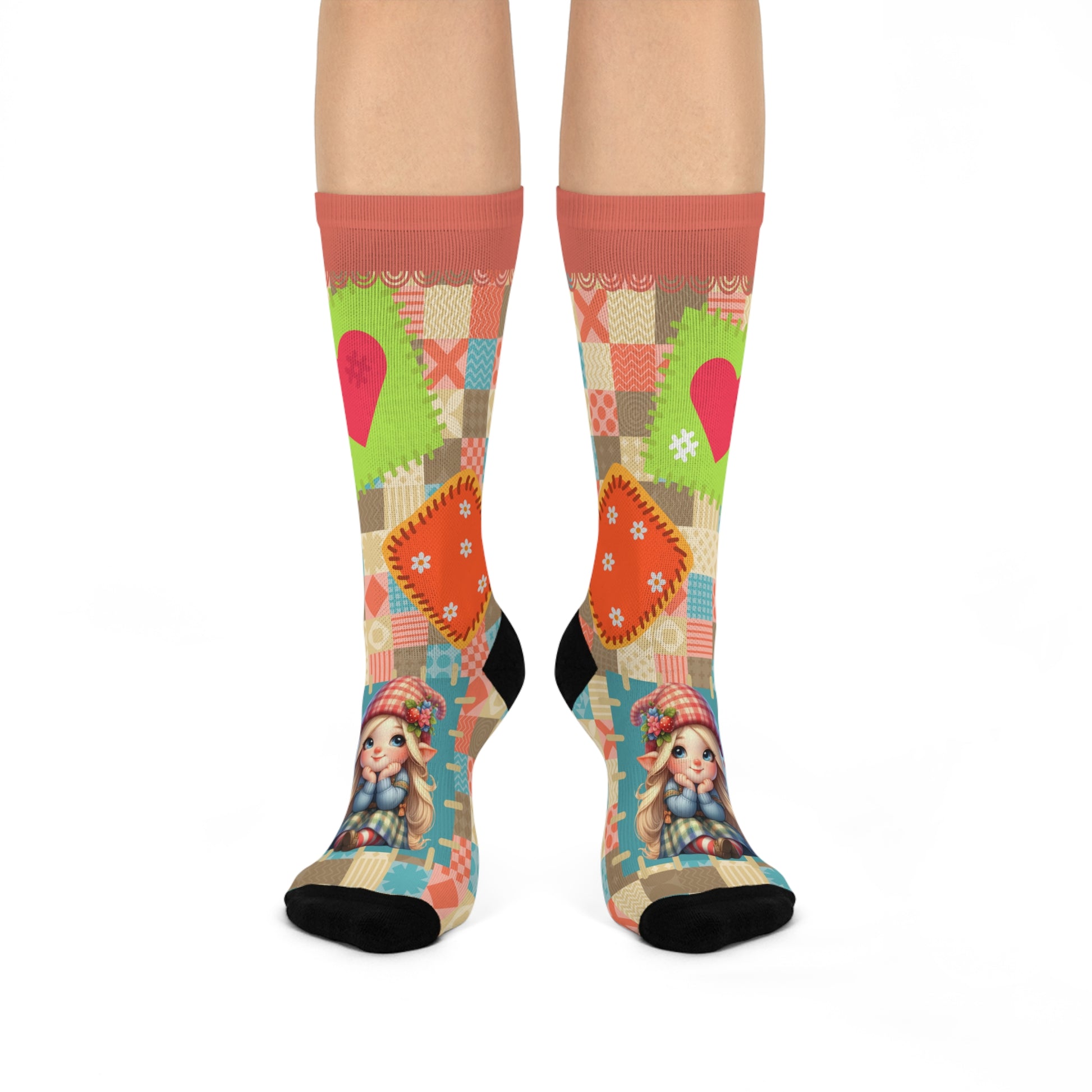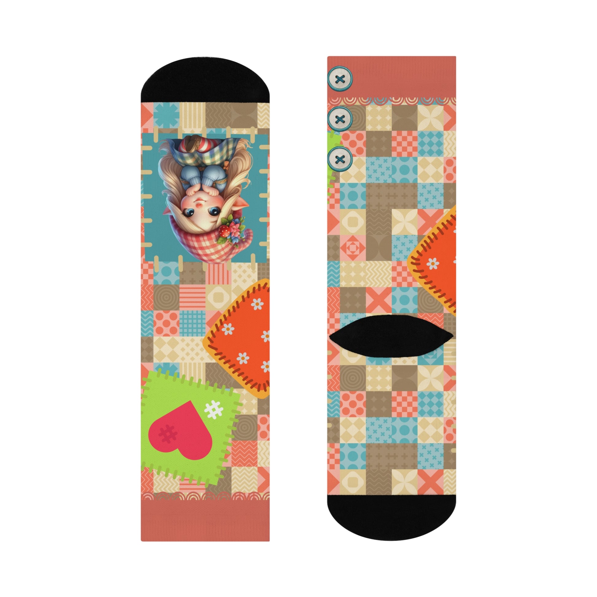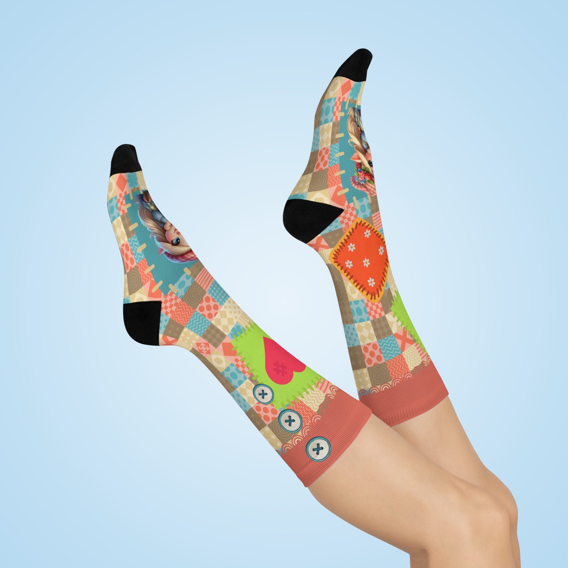 Cushioned Crew Socks-Patchwork Gnome