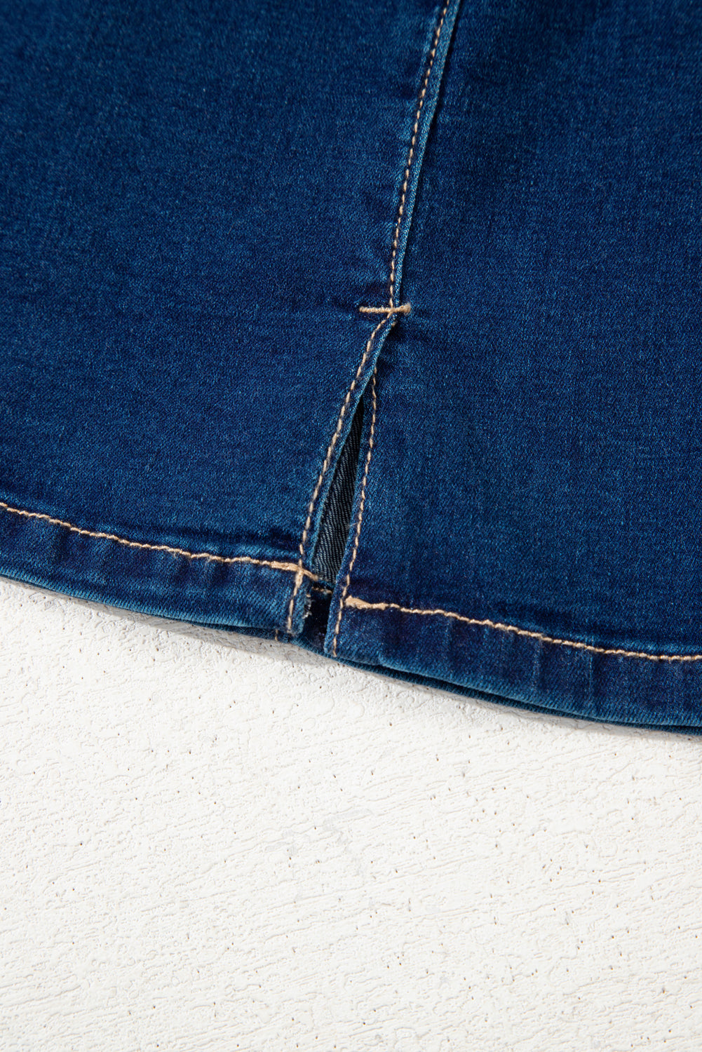 Dirty blue Sleeveless Zipped Bodycon Denim Short Dress