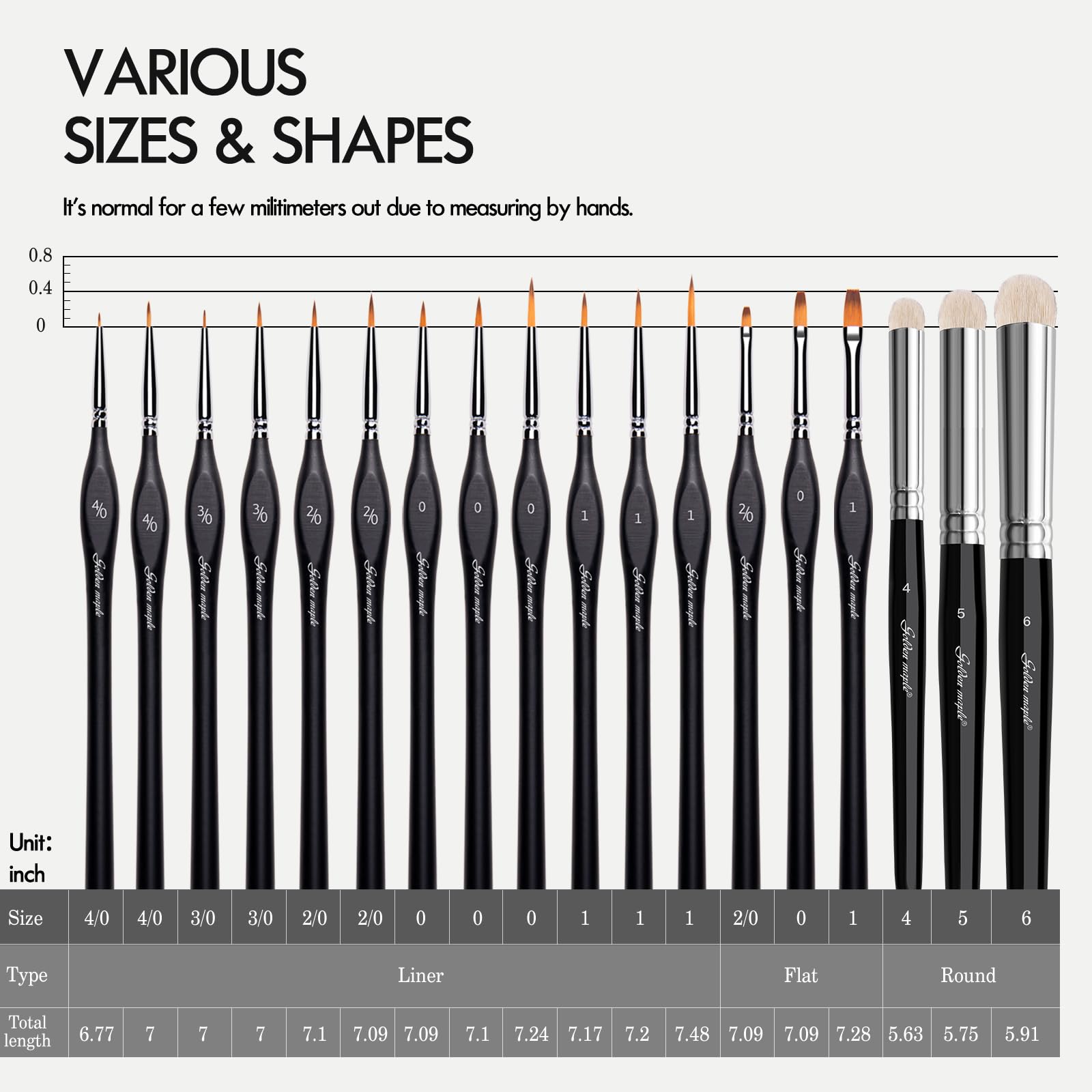 - 【Expressive Potential】18 model paint brushes of different shapes and sizes(Spot 4/0, Angle 1, Flat 1, Round 1, Liner 5/0, 3/0, 2/0, 0, 1, 2, Detail 20/0, 10/0, 5/0, 3/0, 0 ) and 3 large dry brush, it will satisfy all your needs of detail painting,ensure You're getting the best fine detail brushes for Your Painting.