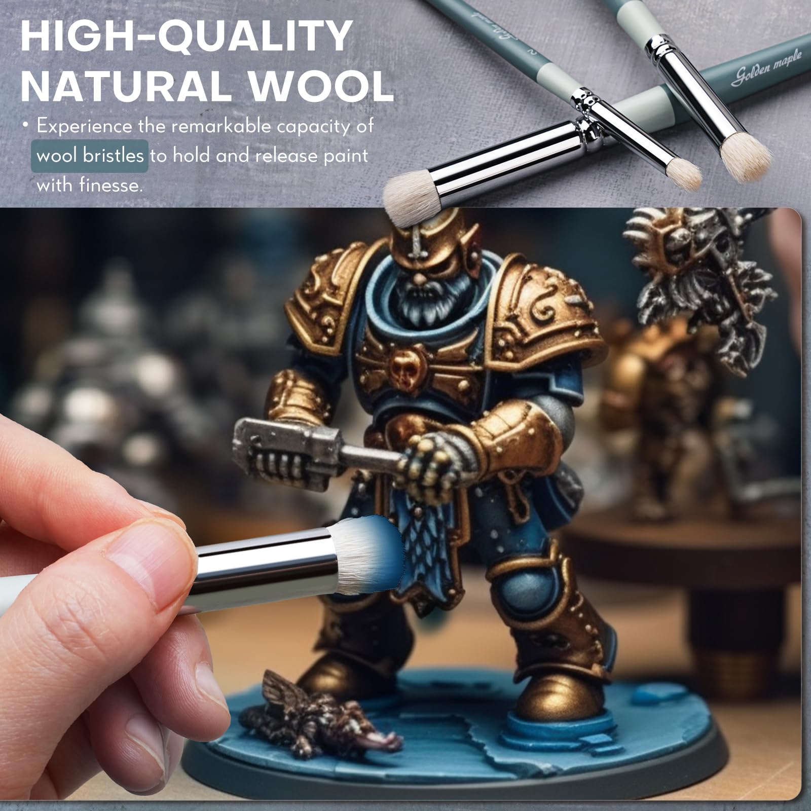 - 【Imported Nylon Hair】golden maple miniature paint brush dry brush set features a bristle head made from premium imported nylon sourced from Japan. The nylon bristles have been carefully crafted to provide a smooth and controlled application, allowing for precise strokes and detailed work. The bristles retain their shape over time, ensuring consistent results even after extended use, it also easy to clean and maintain.
