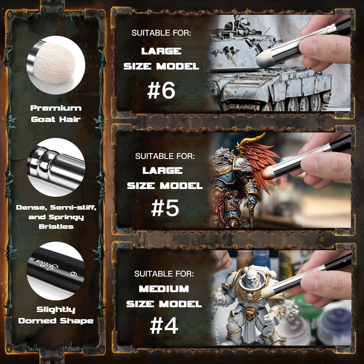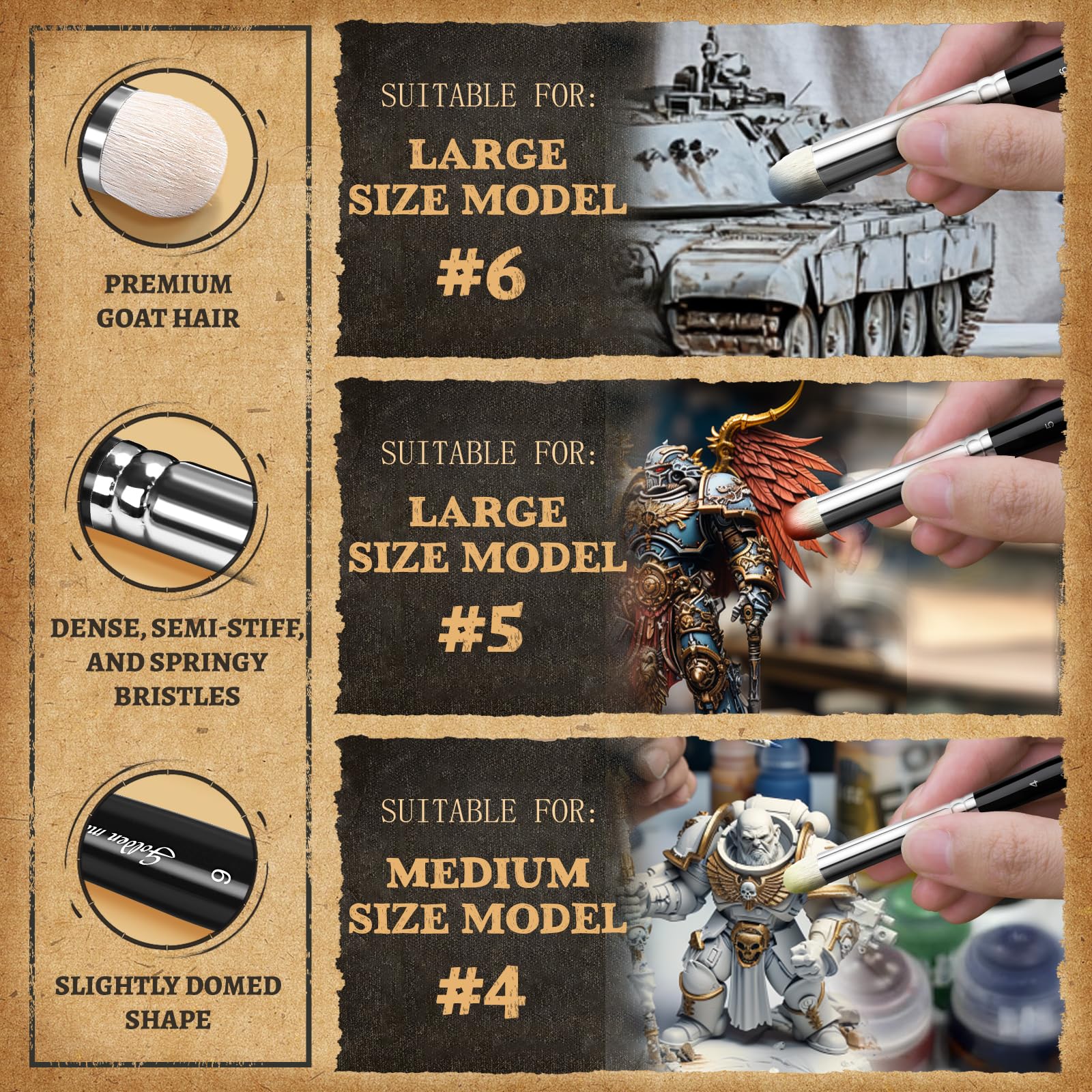 - 【Versatility】The combination of Dry Brush and Miniature Paint Brushes allows you to seamlessly transition between bold, textured strokes and intricate detailing. Achieve depth and emphasis in your artwork by utilizing the dry brush's textured backgrounds to highlight focal points that are then further accentuated by the sharp lines from the detail paint brushes.