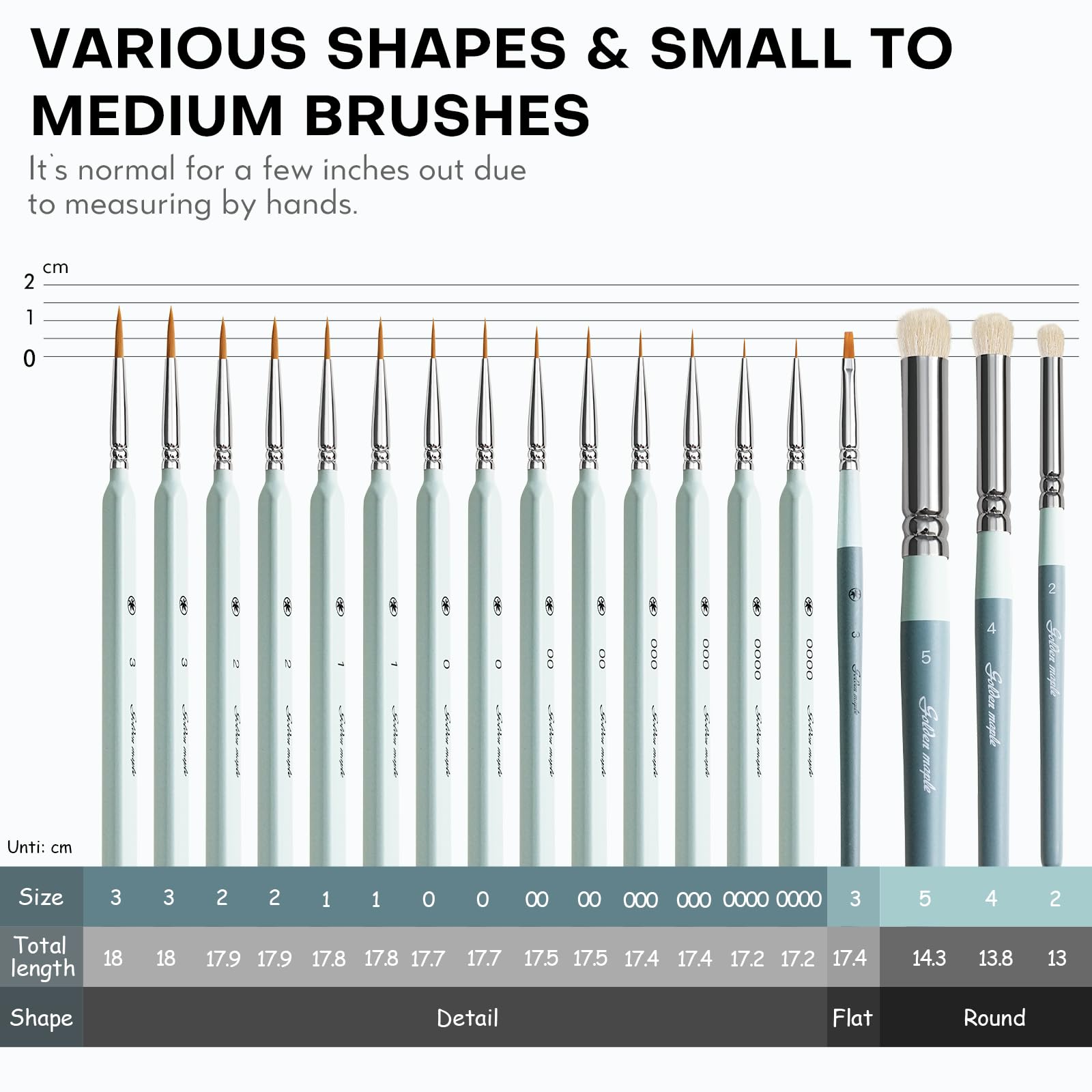 Golden Maple Miniature Paint Brushes Drybrush-18PCS Micro Detail Paint Brush Set, Small Fine Detail Model Brushes for Acrylics, Watercolors & Paint by Number, Figurine - Cocoa Brown