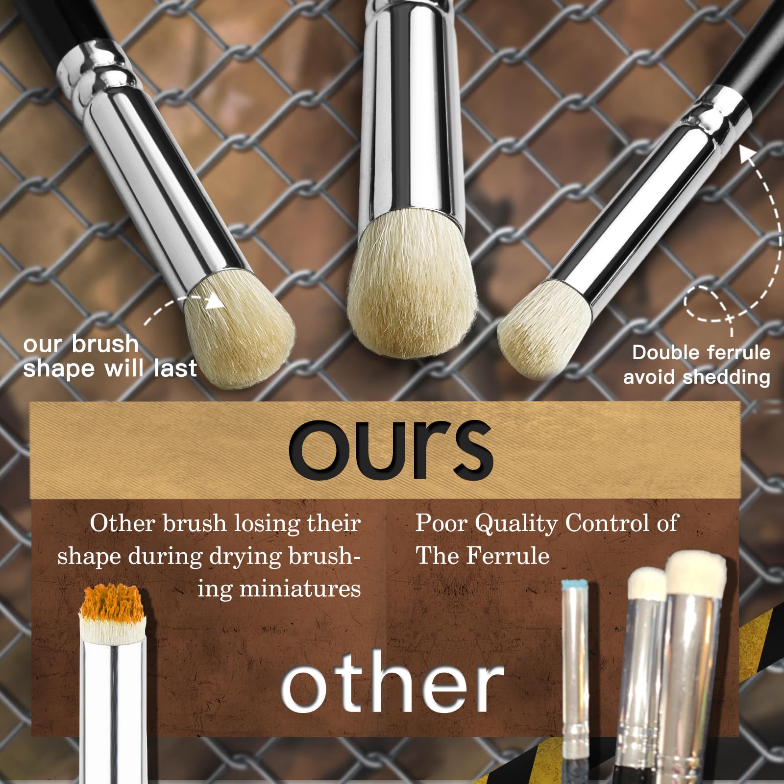 - 【Luxurious Wool Texture】Immerse yourself in the lush texture of sheep's wool bristles. Crafted from natural wool fibers, our miniature paint brushes dry brush head offers a velvety touch that brings an entirely new dimension to your artwork. the Wool Bristle Dry Brush excels in adding aged and worn textures, imparting an authentic patina that captures the essence of time.