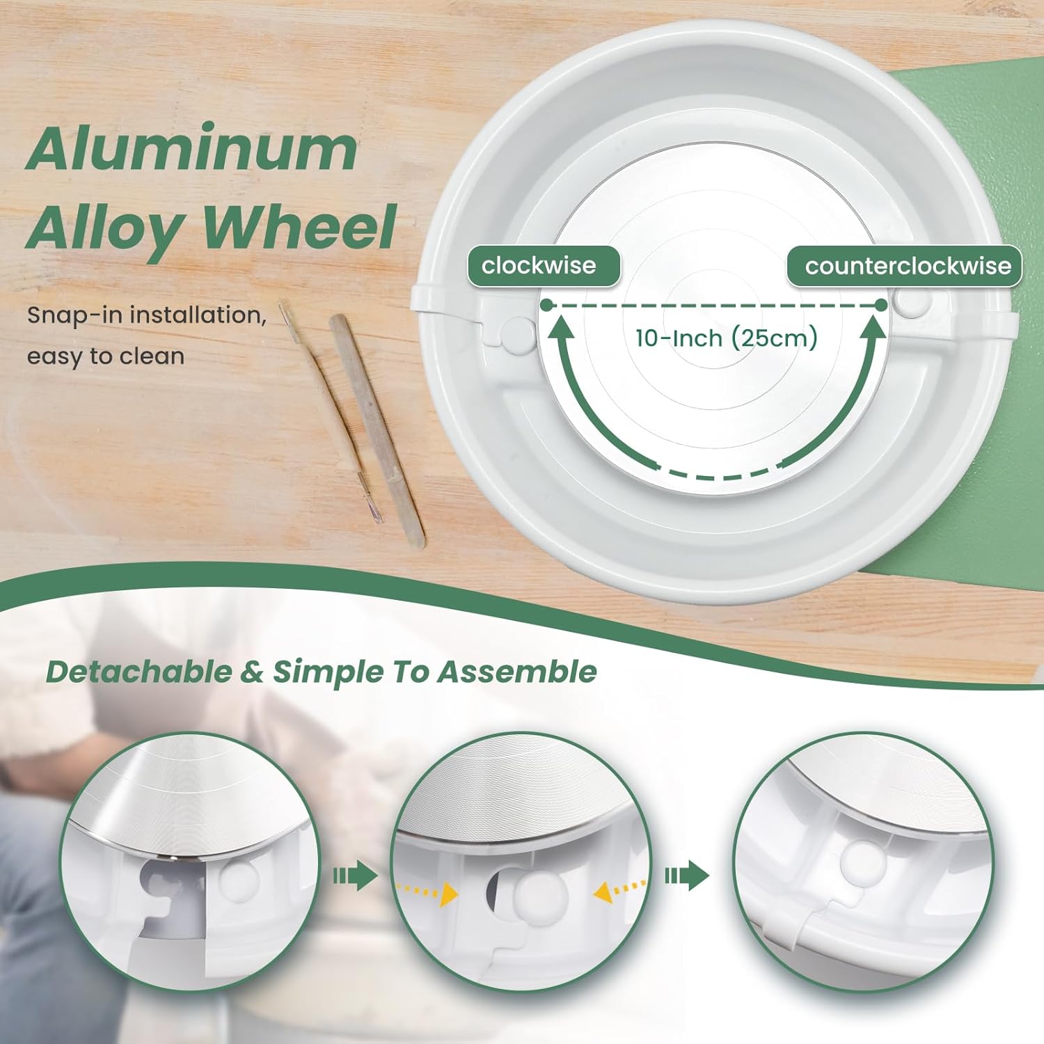 - Well-made potter's wheel: The Huanyu pottery wheel with aluminum alloy turntable & bright finish body, scratch-resistant and wear-resistant. Thickened foot pads for non-slip and stable placement