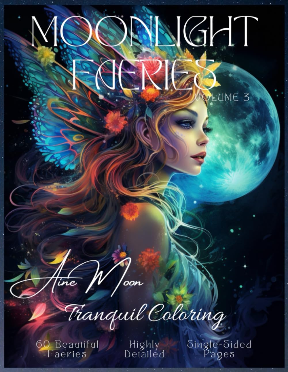 Relax, unwind, and let the beautiful Moonlight Faeries fill your soul with peace as you fill their world with color!