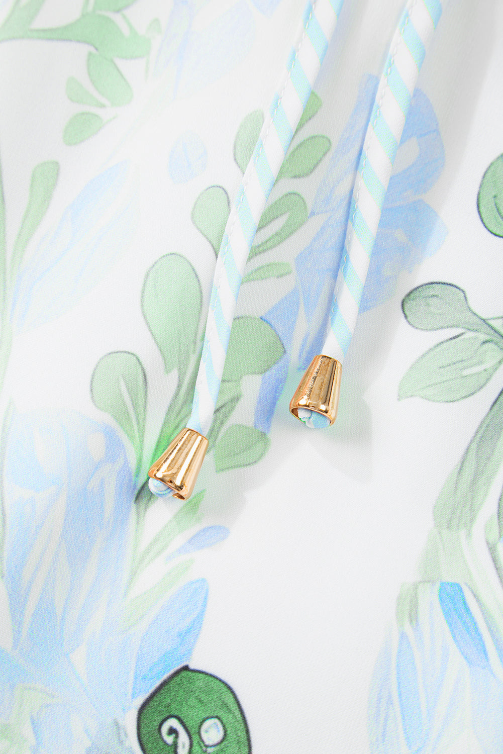 - The tied neck detail allows you to adjust the neckline to suit your preference.