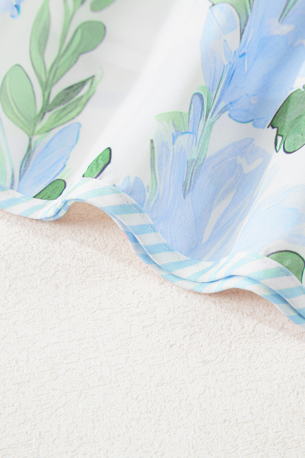 Sky Blue Floral Contrast Edge Layered Short Sleeve Mini Dress
