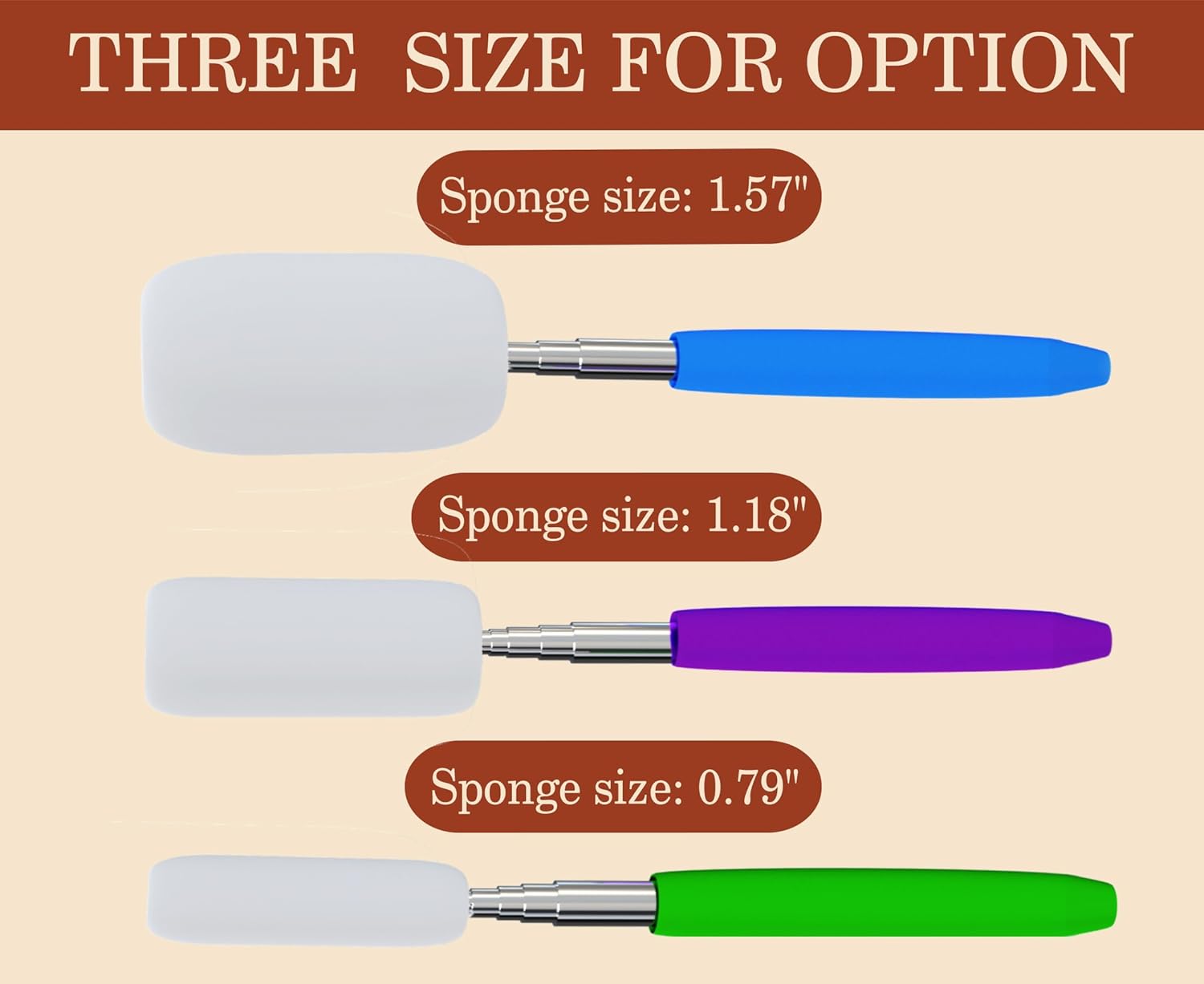 Telescoping Sponge Stick for Pottery, 27 Inches Long Pottery Sponges, Pottery Tool for Removing Excess Water from Tall and Narrow Pottery, 3 Pack