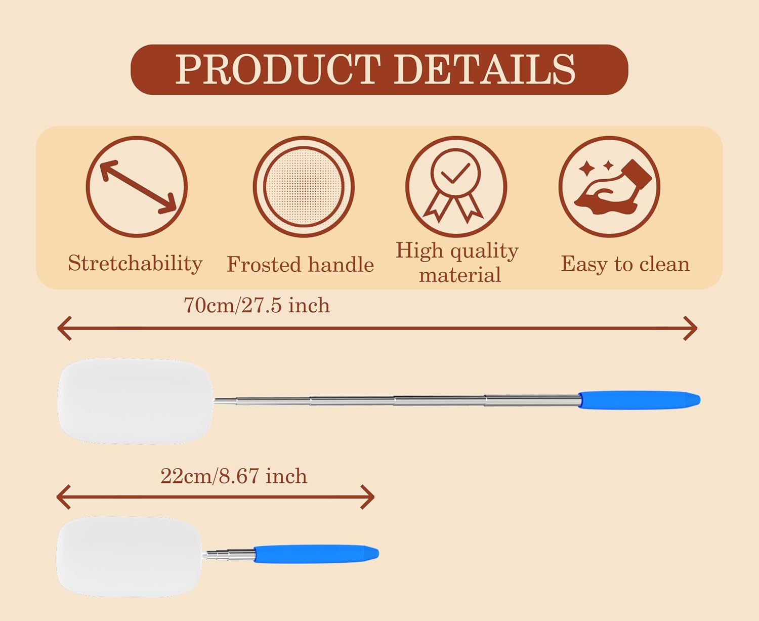 - Extendable Design: Our telescoping sponge stick extends up to 27 inches, Approx. 8.6"(22cm) when retracted, allow you to easily reach the deepest and narrowest pottery.