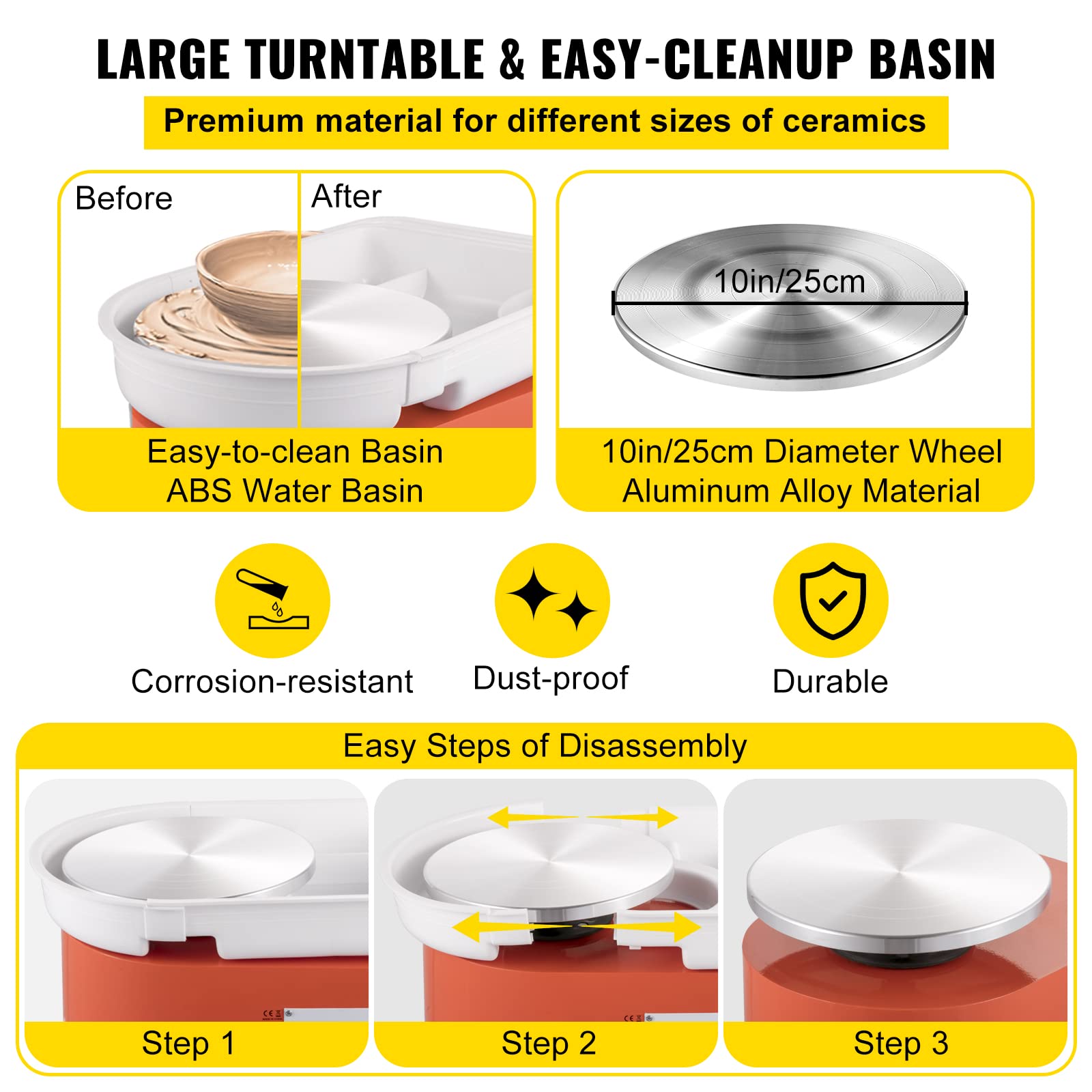 - Wide Ranging Usage: This professional pottery wheel comes with a comprehensive set of 16pcs accessory tools and a waterproof apron, making it ideal for a variety of settings. Whether you're teaching in a school, working in a pottery studio or shop, or enjoying DIY projects at home, this well-designed wheel is perfect for both experienced artisans and beginners.