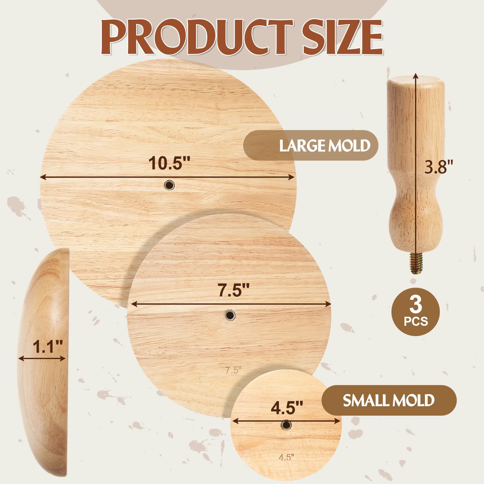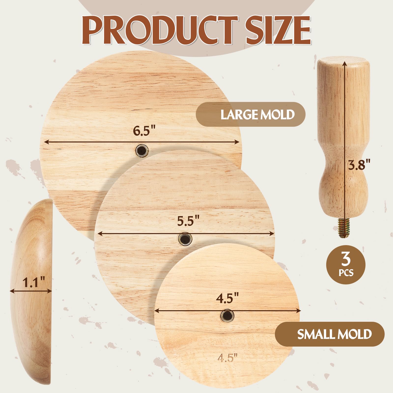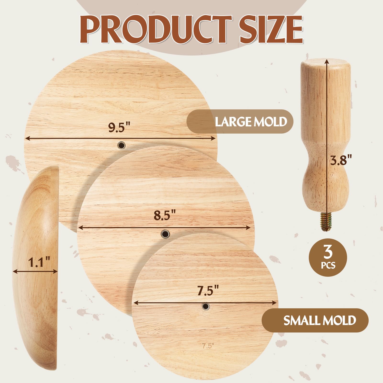 Wenqik 3 Pack Pottery Molds 4. 5'', 6. 5'', 8. 5'' Plaster Molds Wood Pottery Tools with Handle Ceramic Tools for Ceramic Top Forms for DIY Bowls Plate Dish Slump Press Art Making