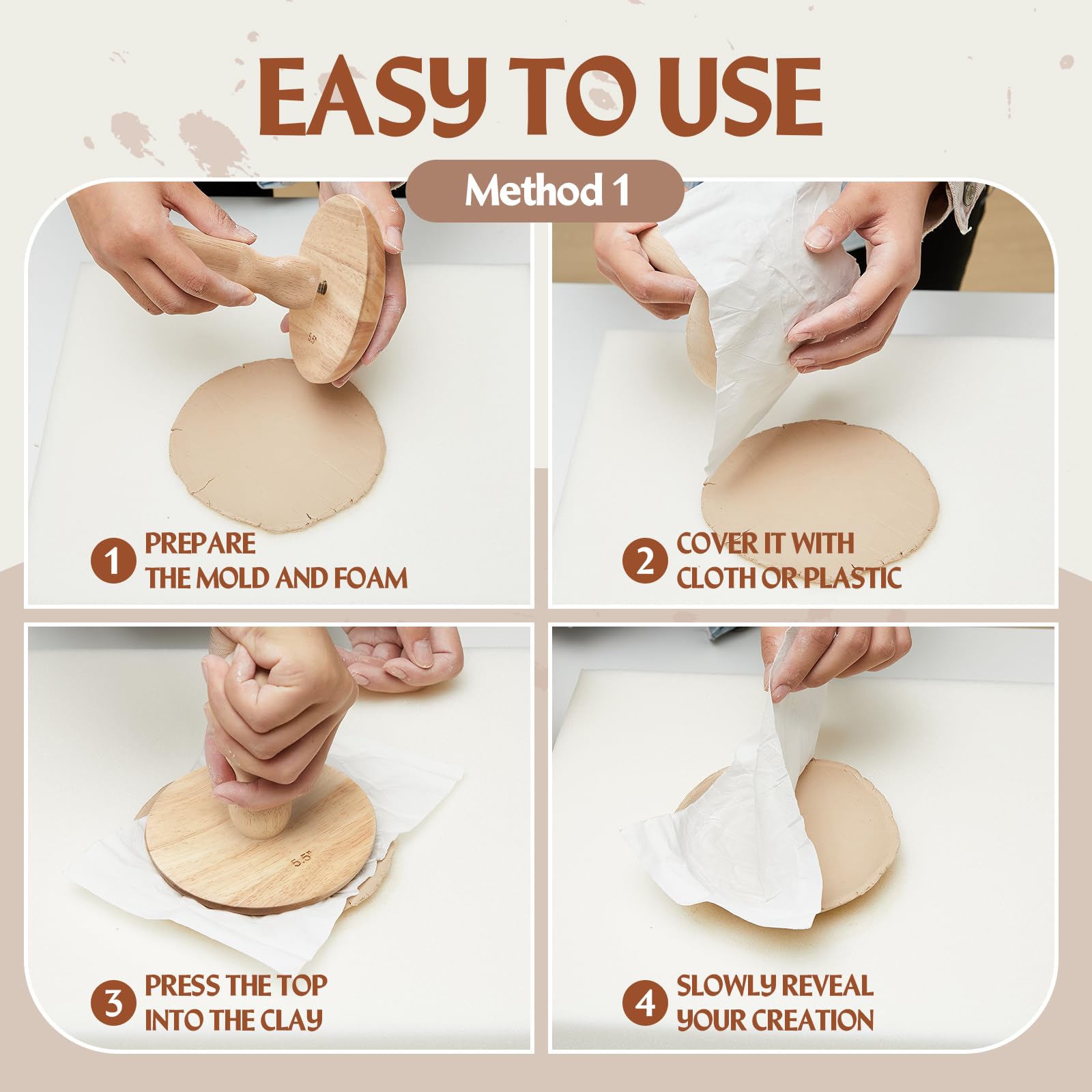 - Lightweight and Reliable Material: these pottery molds are crafted from quality and reliable wood; The wooden material gives the molds ideal longevity and robustness, ensuring prolonged usage while offering comfortable grip; This plate press mold is specially designed with the handle for easy use, enhancing your control over the molding process, allowing you to craft with ease and precision, offering both functionality and creativity