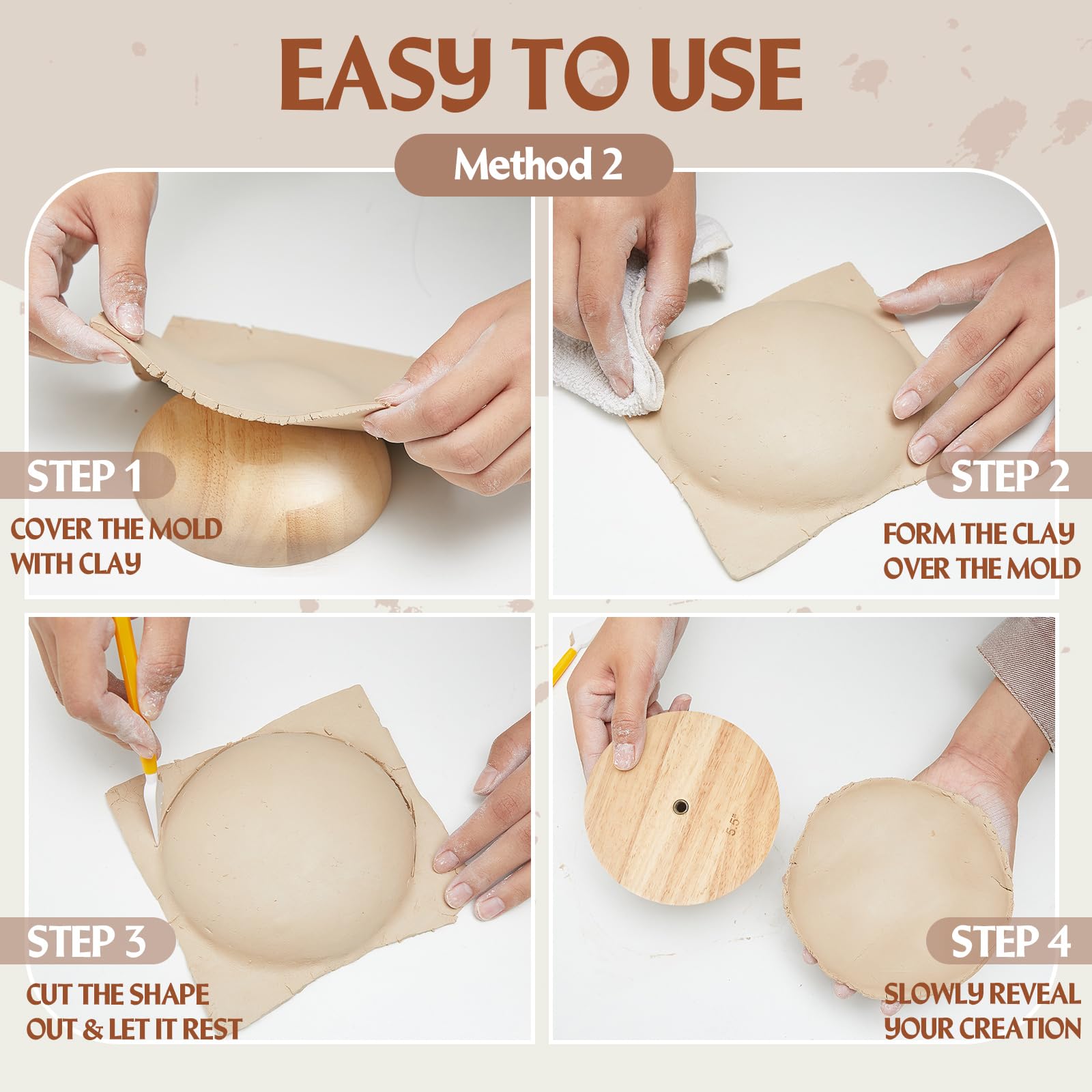 - Usage Flexibility: these pottery tools allow you to create and make your own bowls and plates; Press the top forms into clay using foam (not included) to make classic and elegant plates, dishes or bowls, or lay them flat on your table and put clay above them, allowing you to create works of art as you want
